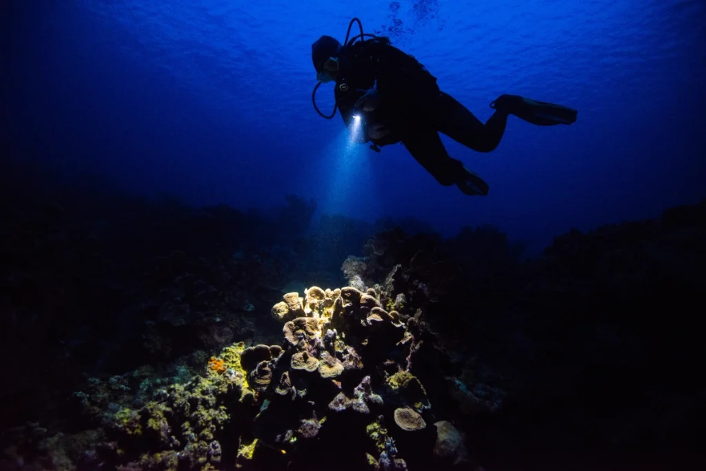 أدخل إلى عالم ليلي: استمتع بسحر الغوص تحت جنح الظلام، وشاهد جانبًا مختلفًا تمامًا من العالم تحت الماء.
